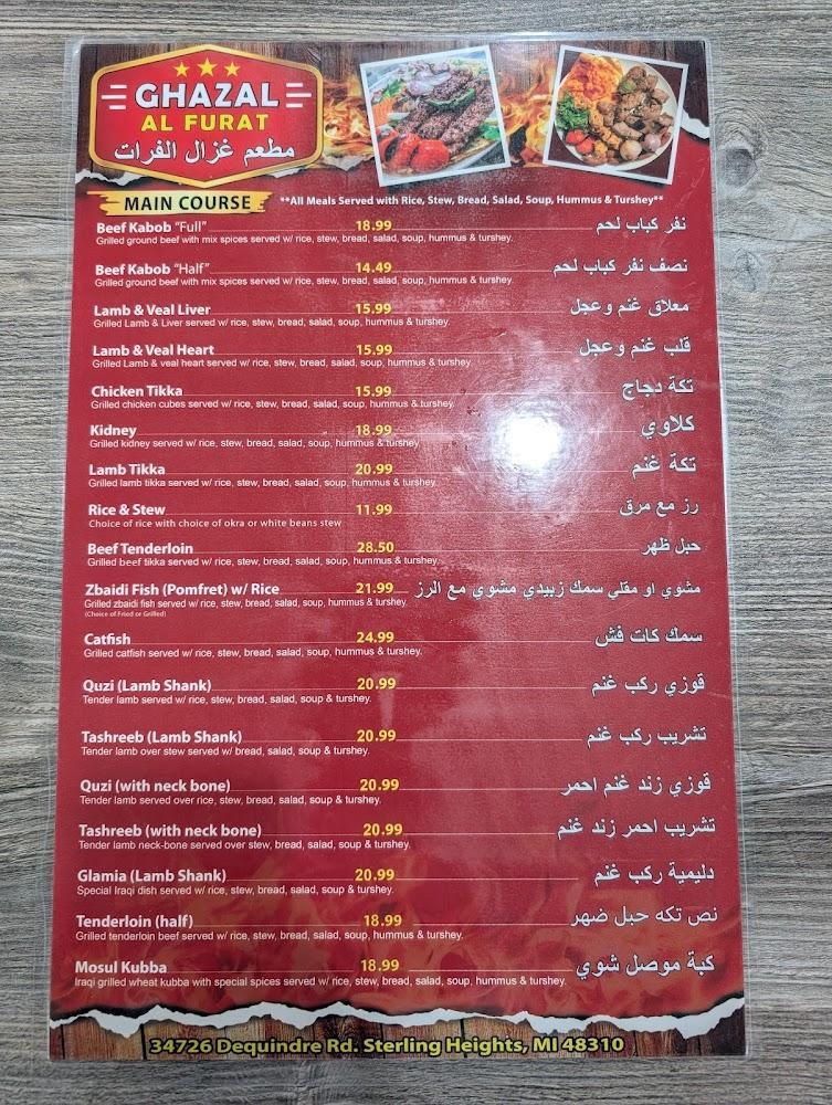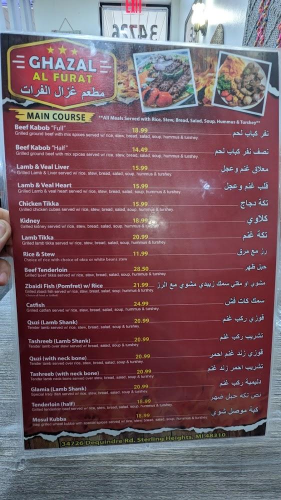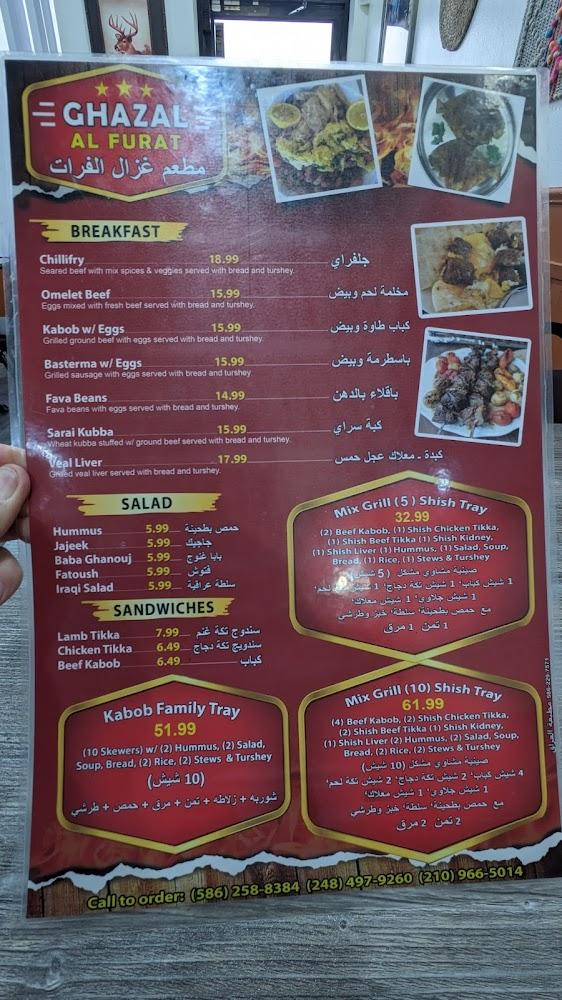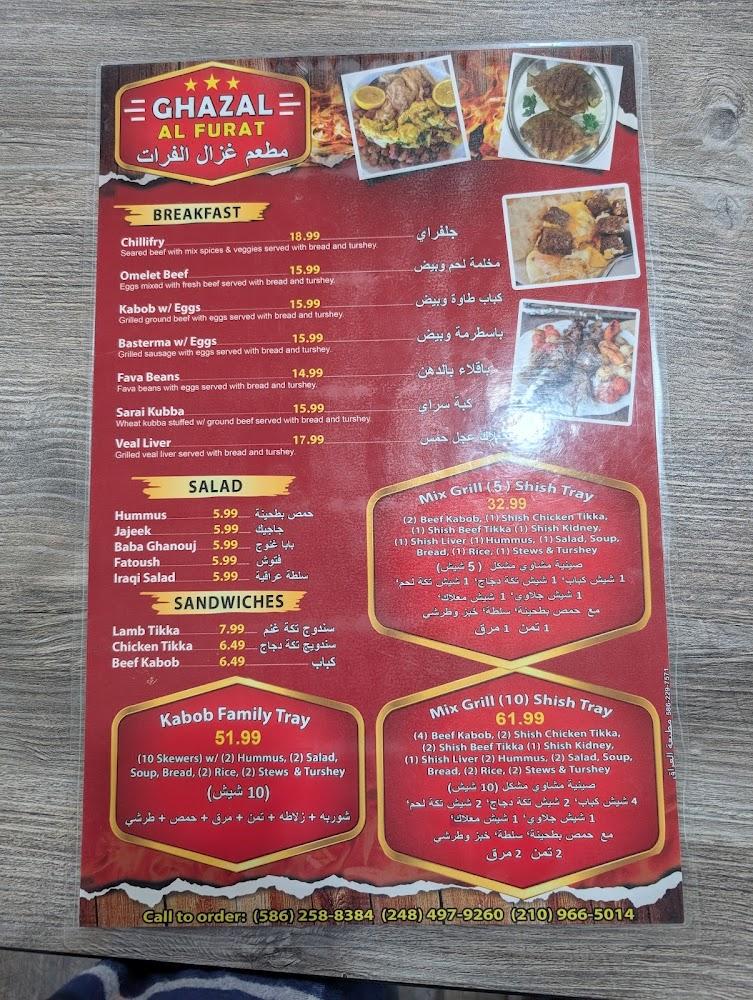 Welcome to Ghazal Al Furat, a delightfully inviting Middle Eastern restaurant located in Sterling Heights, MI. Our menu features a range of authentic specialties perfect for breakfast, lunch, or dinner, with options for halal, healthy dishes and shareable small plates. Enjoy our relaxed ambiance and accessible dining space, ideal for families and groups alike. We offer convenient services like drive-thru, contactless delivery, and takeout, ensuring a delightful culinary experience no matter how you choose to dine. With a commitment to great taste and service, Ghazal Al Furat is your go-to spot for a flavorful journey.